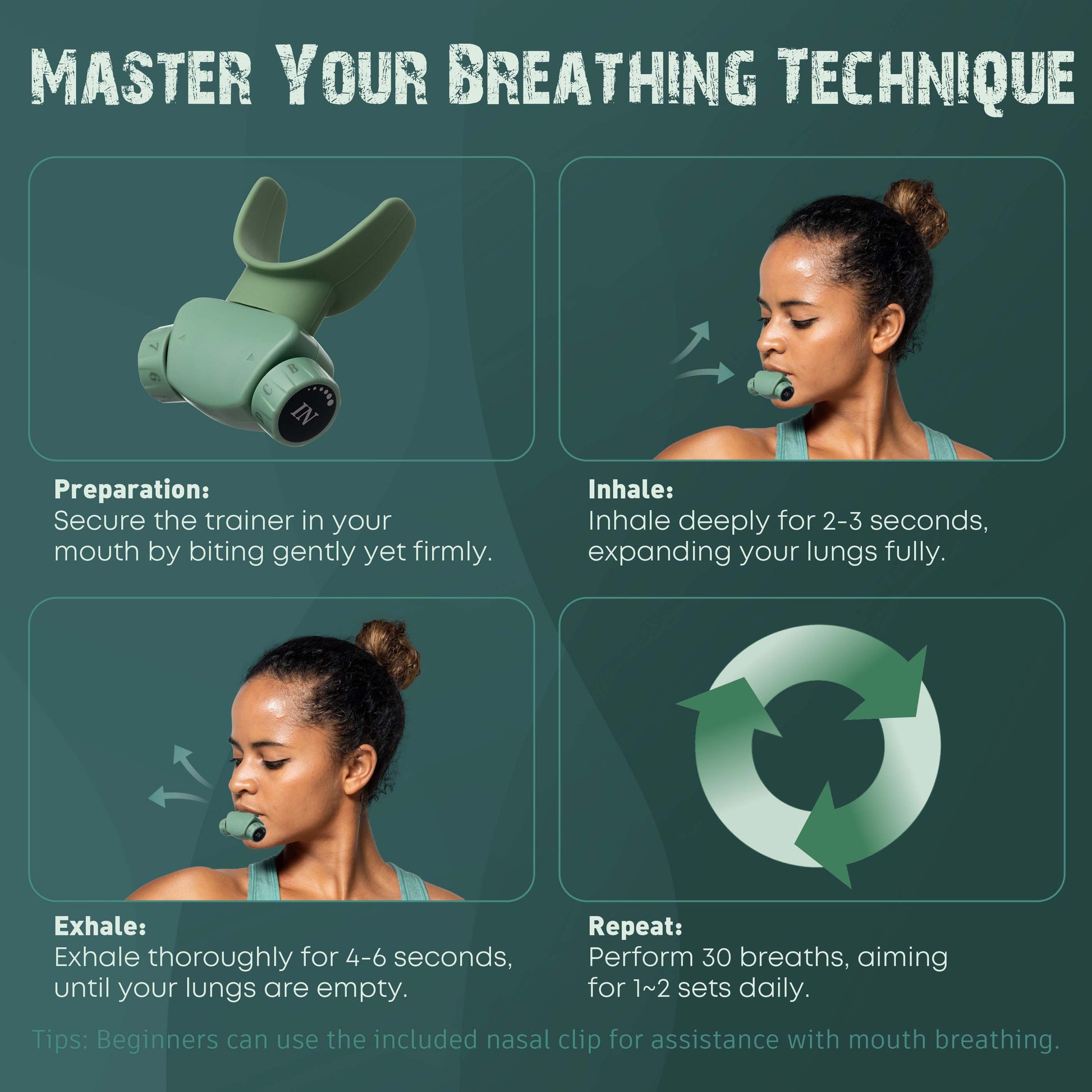 For best results, start with lower resistance settings and gradually increase as your respiratory muscles strengthen. Perform 30 breaths per session, aiming for 1-2 sets daily, ideally before meals. Always consult with a healthcare professional if you have any pre-existing conditions or experience discomfort.